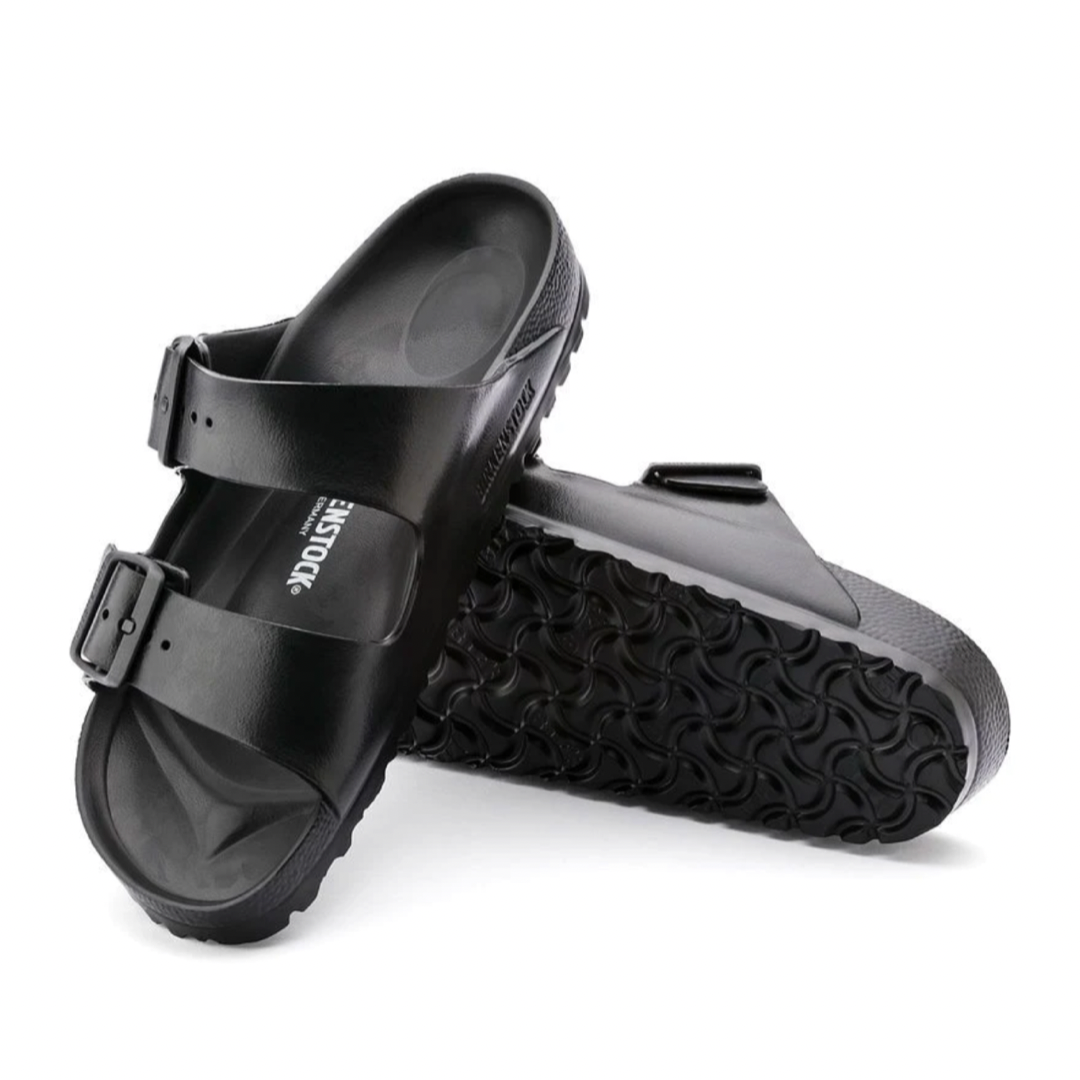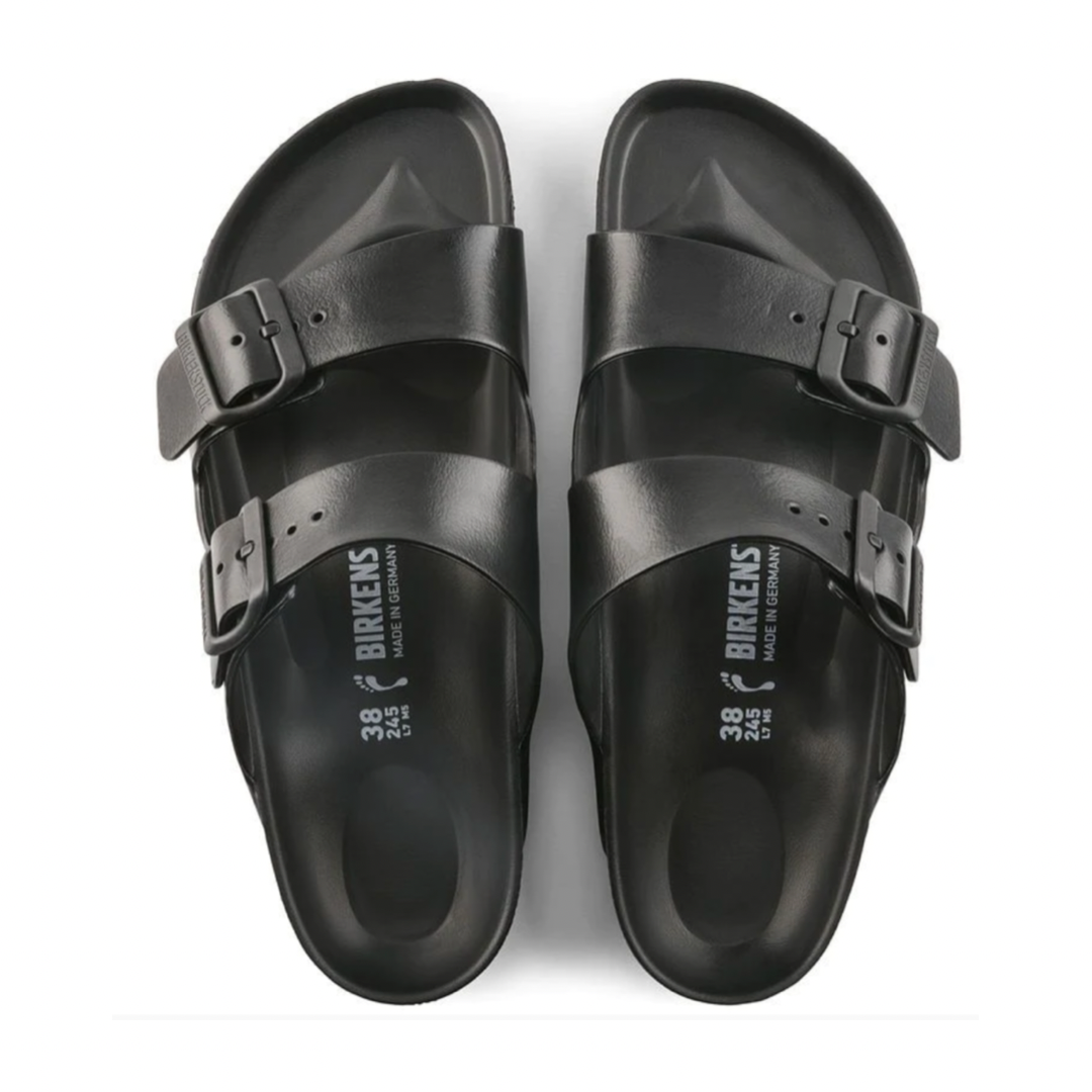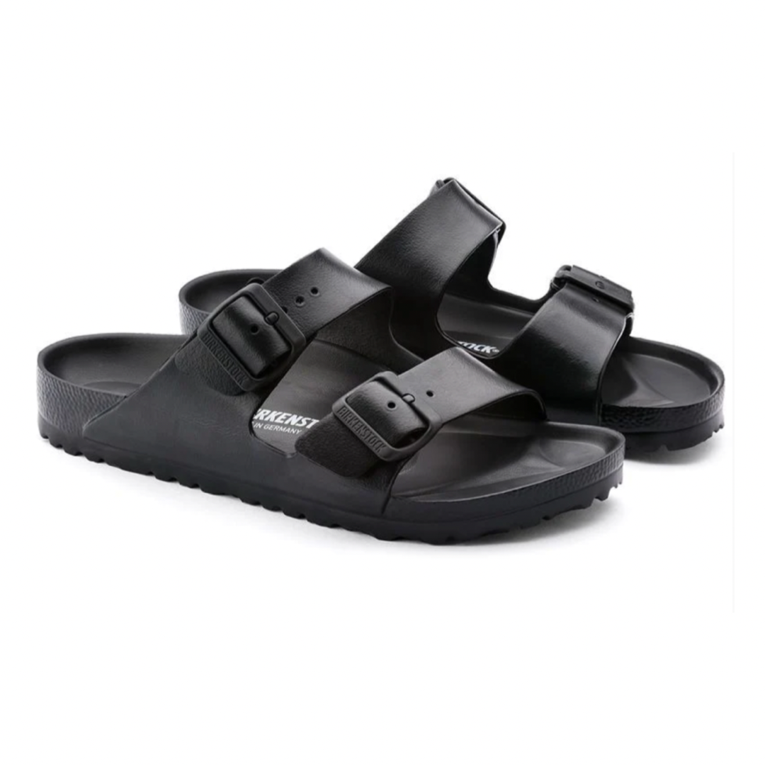 The legendary two-strap design from BIRKENSTOCK - the Arizona. Modeled on the cork original, this sandal is made from ultra lightweight and highly flexible EVA. These sandals are shock absorbing, waterproof, and skin-friendly. Wear them at the beach, in the garden, or around the gym and after workouts. It's the perfect addition to your classic BIRKENSTOCK sandals.