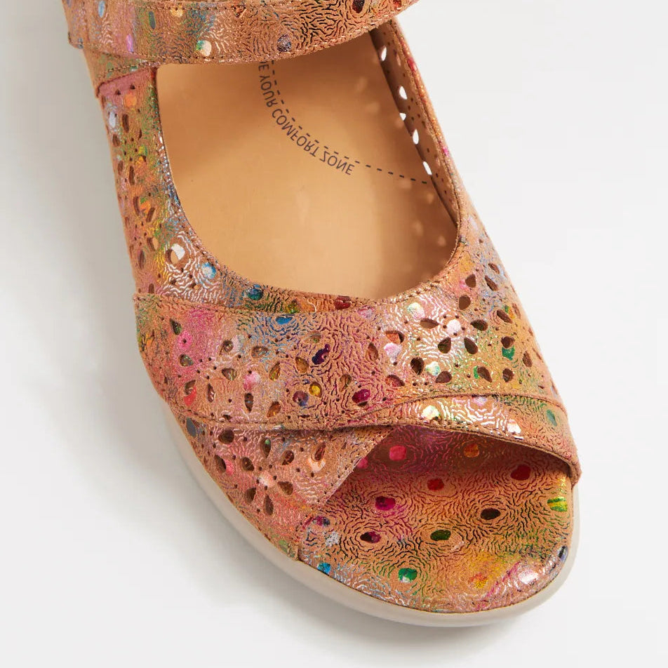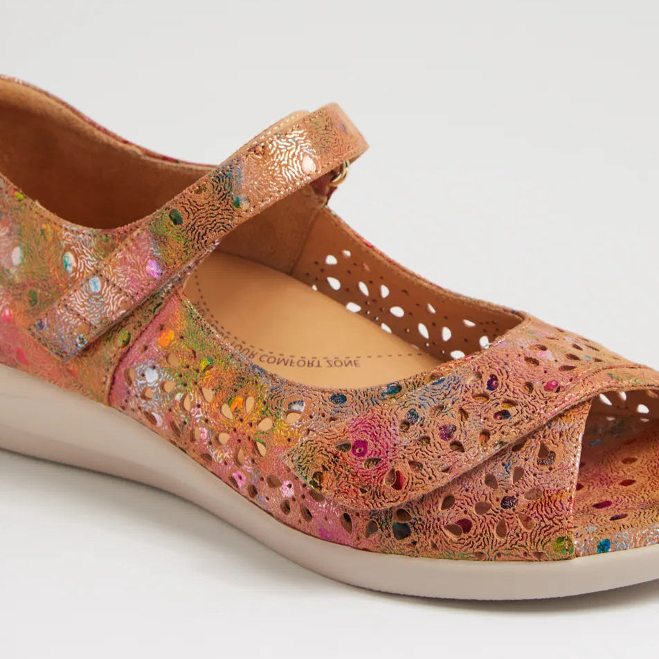 Comfortable, breathable and easy to wear, DAFFODIL by Ziera is a pretty and practical leather sandal ideal for active summers! Fastening with convenient riptape straps, the design is fitted with a removable Super Support footbed that can be swapped out for your own orthotics, made from flexible, shock-absorbing PU with arch support, metatarsal cushioning and a contoured heel cup that creates a wider, deeper fit for excellent stability. This style features the brand's standard W fit, which should suit most people.