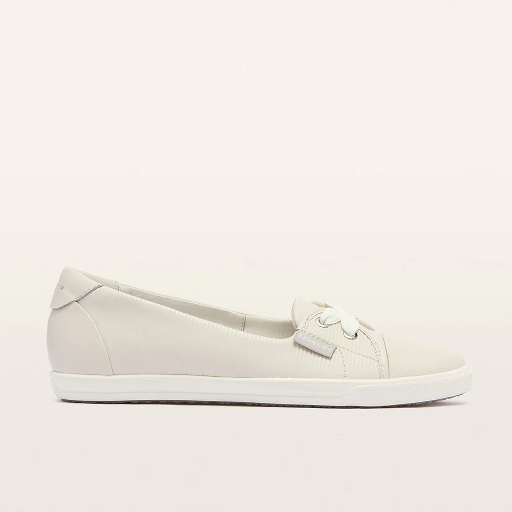 Add a special touch to every-day looks with Hannah in go-with-anything Chalk Emboss. Hannah features a four-layered cushion and support system, a dual-density moulded sole, leather with embossed details, and customisable fitting options. The answer to feel-good fashion, Hannah is a must-have take on a mainstay.