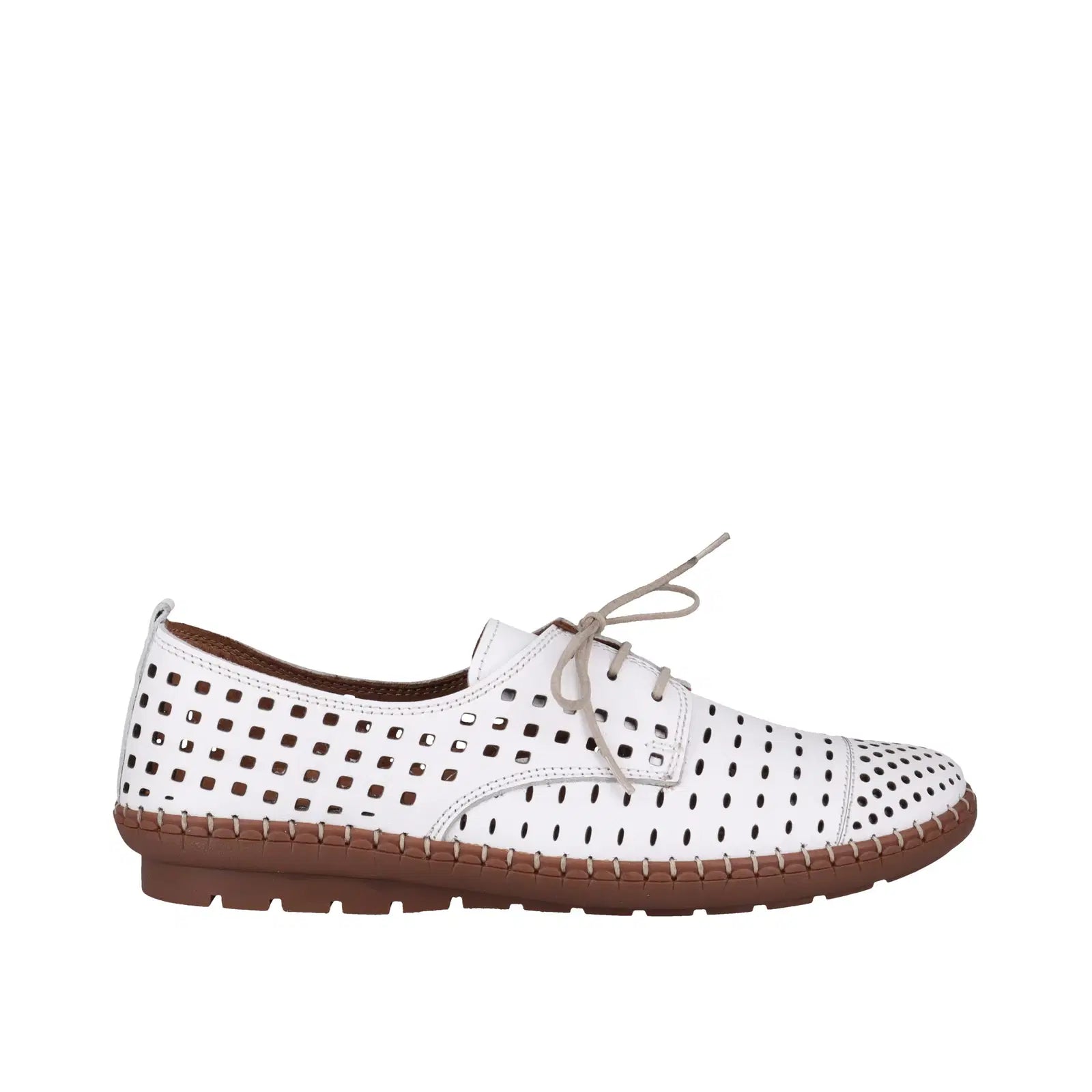Kroon by Cabello : Dress up your casuals with this cute, laser cut shoe. An edgy take on a lace-up, this design features multi directional laser cut detail. A contemporary style that pays homage to the classic brogue, let this shoe add something different to your look. Removable leather lined contoured insole.