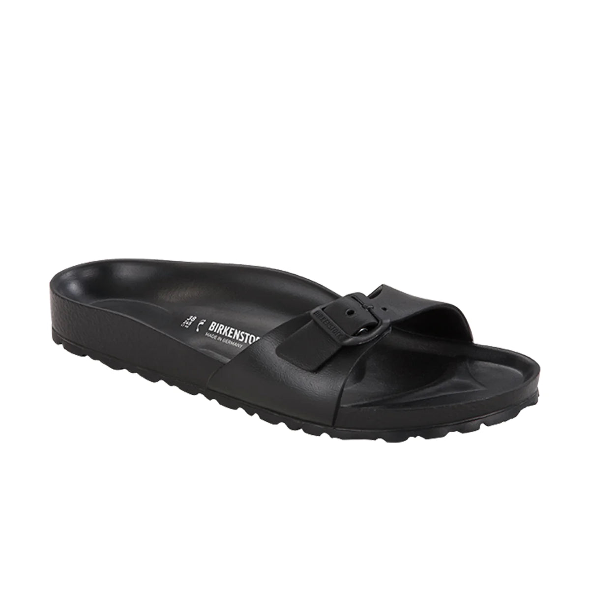- Contoured EVA footbed features moderate arch support, a deep heel cup and roomy toe box