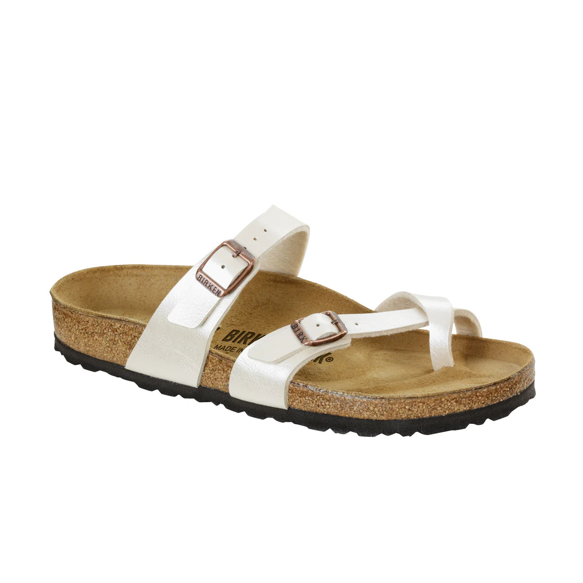 The Birkenstock Mayari thong sandal is a distinctive classic model with a toe loop and cross strap. The combination of anatomically shaped footbed and secure adjustable instep strap makes Mayari extremely wearable in a wide range of situations. Classic support and adjustability, designed beautifully.