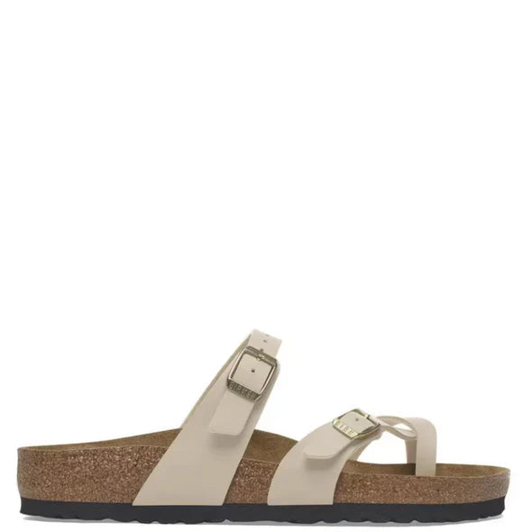 The Birkenstock Mayari thong sandal is a distinctive classic model with a toe loop and cross strap. The combination of anatomically shaped footbed and secure adjustable instep strap makes Mayari extremely wearable in a wide range of situations. Classic support and adjustability, designed beautifully.
