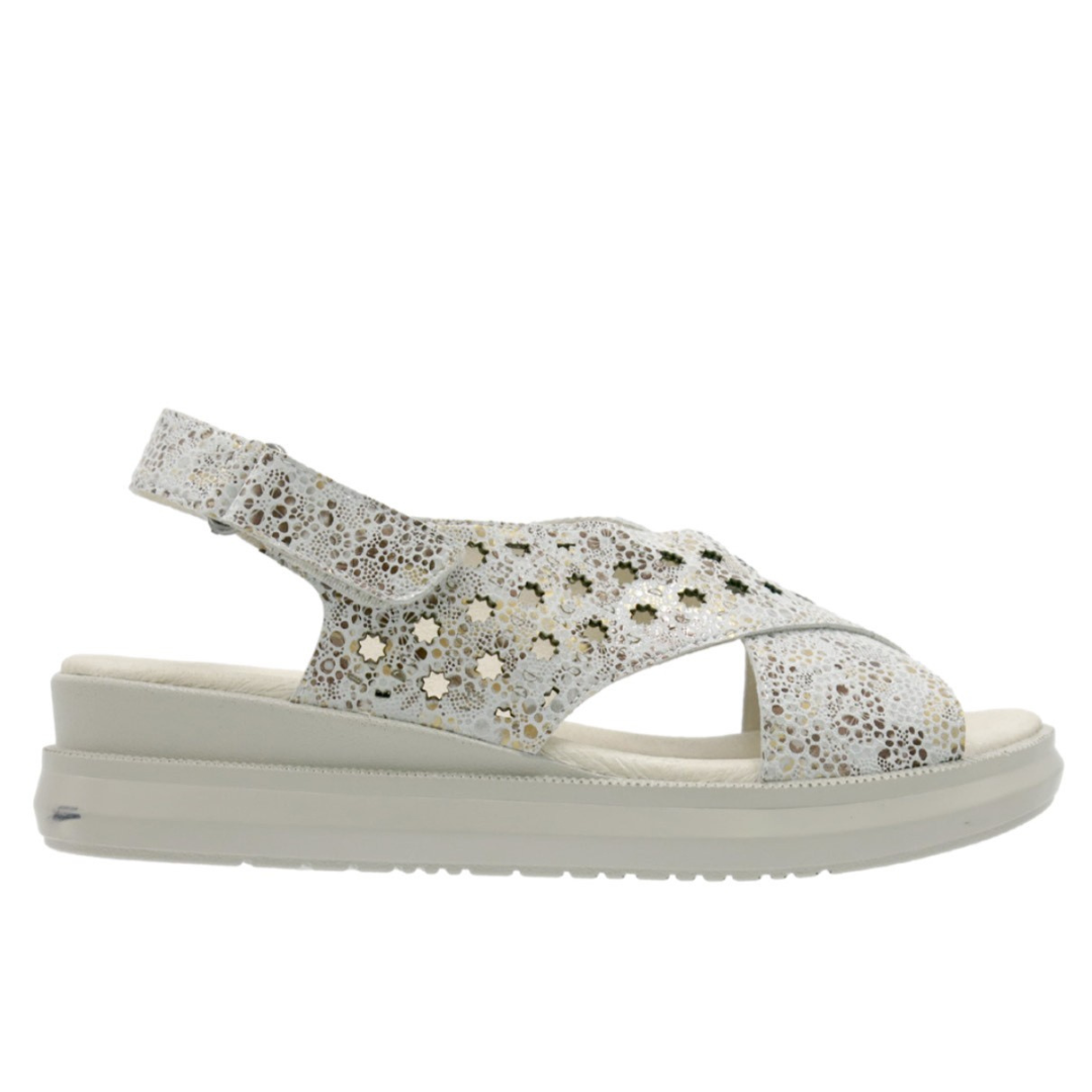 Mooli by Cassini is a sandal designed for maximum comfort and support. It has heel velcro adjustability and a very cushioned and comfortable footbed, perfect for all-day wear. The v cut upper adds a touch of style to this functional and comfortable sandal. his sits on a low wedged sole unit, with a rubber sole.