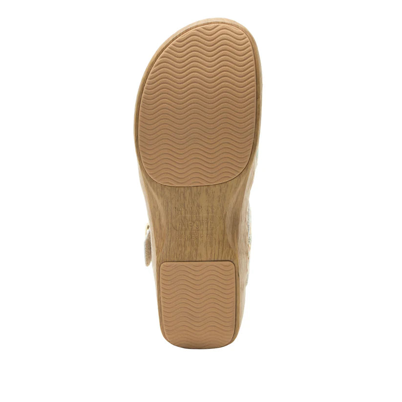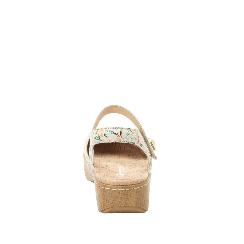 Introducing the Alegria Opal in the delicate Summer Thyme color, a slingback Mary Jane that blends elegance with everyday comfort. This style features a soft, cream-toned background and a print of dainty, subtle flowers. The adjustable hook-and-loop strap allows for a secure, tailored fit, while the open-back design adds a hint of sophistication and breathability. Inside, the cushioned microsuede footbed and padded collar contour to your feet for exceptional comfort. The patented Alegria footbed provides superior arch support, finished with a sleek sole for a contemporary look. The Opal in Summer Thyme is perfect for those seeking a versatile and charming shoe with a touch of floral finesse.