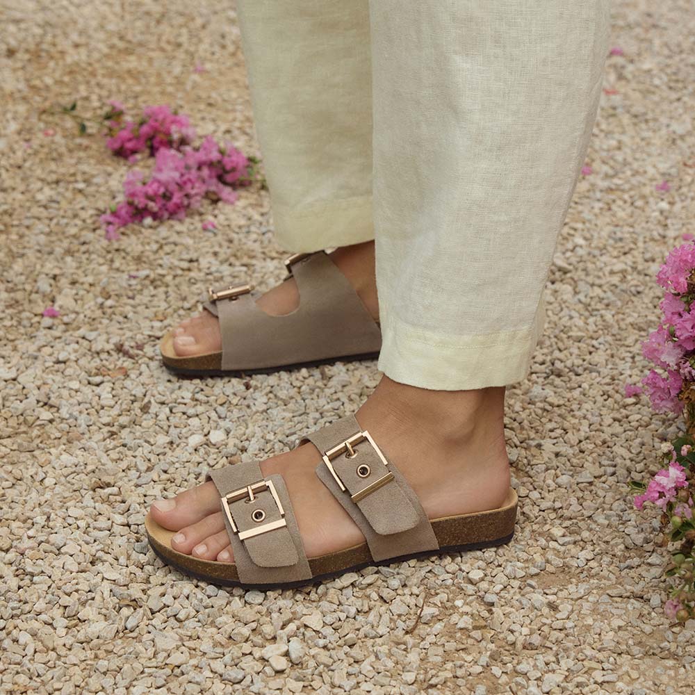Slide into comfort and style with Deon—the standout slides in chic Camel Stud. With adjustable straps and striking stud detailing, Deon combines bold fashion with unbeatable comfort. Featuring our Sole Hero™ Footbed, it offers support for your heel, arch, and forefoot, while the dual-layer cushion system helps prevent foot pain. Crafted from premium leather with a chunky sawtooth sole, Deon is designed for effortless, all-day wear.