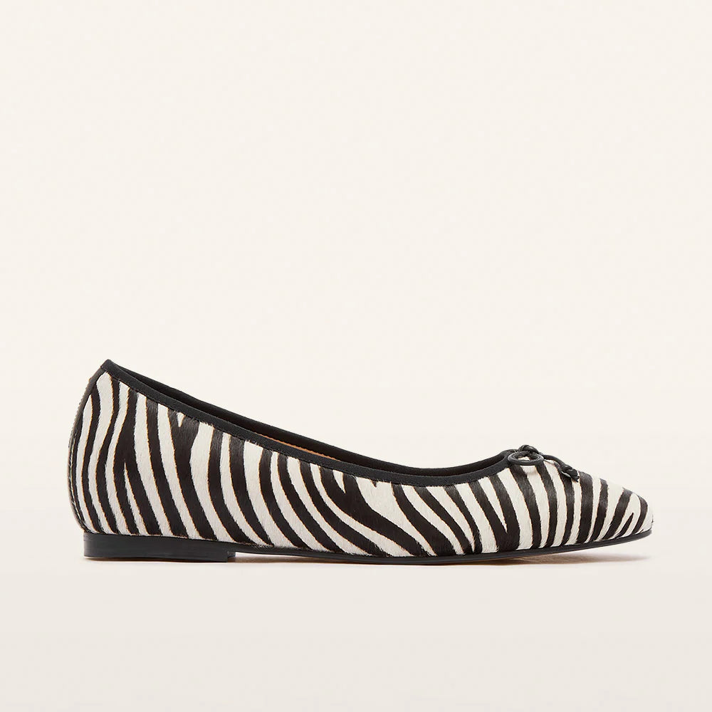 Ballet flats, but better. Trinity elevates the classic ballet flat with bold Zebra printed calf hair leather. Featuring plush rPET lining—crafted from recycled bottles—to reduce pressure and rubbing, hidden arch support, and our podiatrist-designed footbed, it delivers ultimate comfort with effortless style. Classic, redefined.